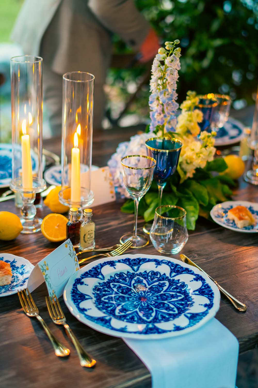 Ogni dettaglio raccontava l’essenza dell’Italian wedding style: limoni del Garda, sfumature blu del lago, piatti mediterranei e splendide composizioni floreali come centrotavola. Un allestimento curato e armonioso, per valorizzare la bellezza della tavola la qualità dell’esperienza.